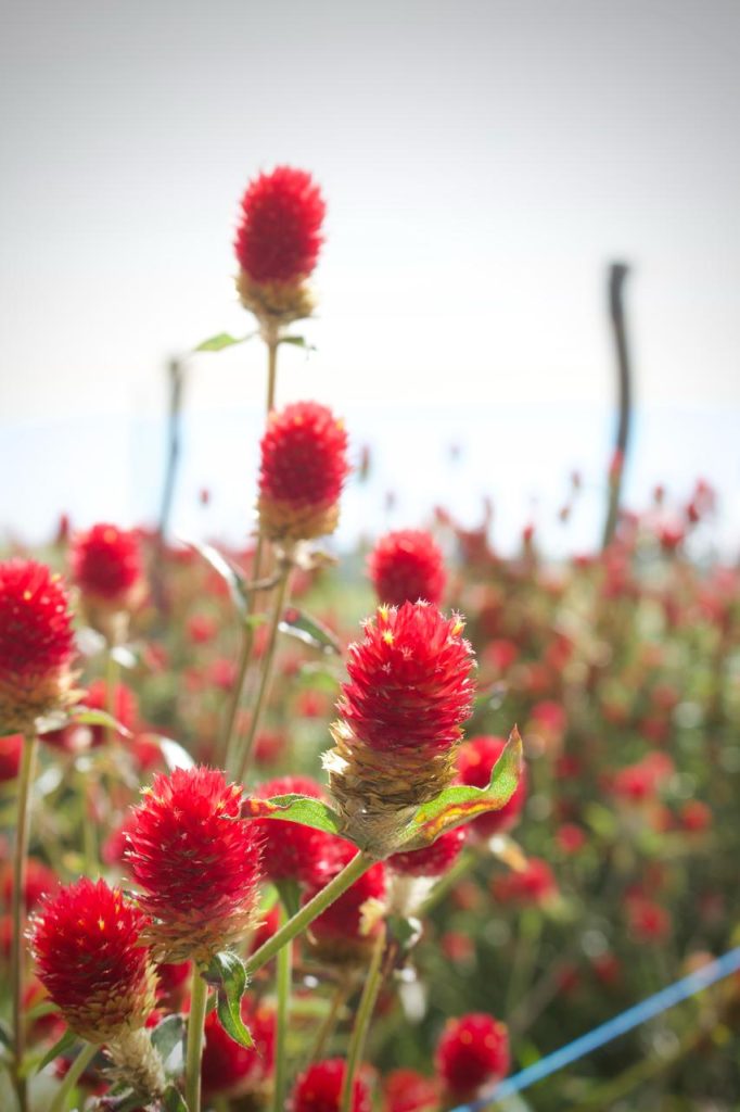 flower farm, bursting with dahlias, cosmos, flamingo feathers, strawflowers, snapdragons, and more